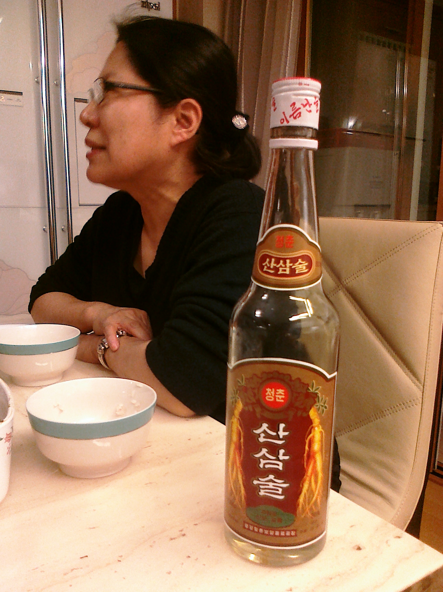 This bottle came from North Korea. The liquor in it originally was drunk long ago by my uncle and his friends. The soju in it in this picture was infused with wild ginseng also brought over from Jong-Il-Bob CrazyPants Happy Fun Land. Farmed ginseng is pungent and pricey, but the wild stuff is much more mellow-tasting, takes forever to grow, and even more expensive. The few South Korean factories allowed to do business across the 38th parallel is a small window of commerce into North Korea, and it is through this the bottle and the ginseng flowed though. The booze was drunk, the bottle washed, and then filled with high-end soju and a small portion of the wild stuff. It was served as a palate cleanser of sorts between the courses of scotch Uncle Seung was obliterating our jet lag with, and it was heady with notes of fresh ginger and anise. It felt like a warning to my brain, my liver, my gut, and my heart – the good times to be had on this trip will be unrecognizable to you. Keep alert. Be aware of wonder. And keep your hand underneath your glass as your relatives pour you another portion of otherworldly homemade booze, you uncouth lightweight.